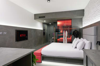 Discover a space where Old Montreal’s charm meets modern comfort. Every room features a plush king-size bed, an in-unit washer and dryer, a fully equipped kitchen with a grand kitchen island and a Nespresso machine. Unwind with smart TVs and a built-in Netflix account, and relax in a cozy lounge area. With self-check-in and your exclusive Boarding Pass, everything you need is at your fingertips. Each guest receives a signature David Hotel tote bag—a little piece of your stay to carry with you.