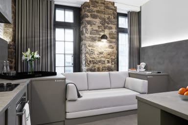 Discover a space where Old Montreal’s charm meets modern comfort. Every room features a plush king-size bed, an in-unit washer and dryer, a fully equipped kitchen with a grand kitchen island and a Nespresso machine. Unwind with smart TVs and a built-in Netflix account, and relax in a cozy lounge area. With self-check-in and your exclusive Boarding Pass, everything you need is at your fingertips. Each guest receives a signature David Hotel tote bag—a little piece of your stay to carry with you