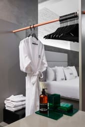 Discover a spacious retreat where Old Montreal’s charm meets modern comfort. Every room features a plush king-size bed, an in-unit washer and dryer, and a fully equipped kitchen with a grand island and a Nespresso machine. Unwind with smart TVs and a built-in Netflix account, and relax in a cozy lounge area. With self-check-in and your exclusive Boarding Pass, everything you need is at your fingertips. Each guest receives a signature David Hotel tote bag—a piece of your stay to carry with you.
