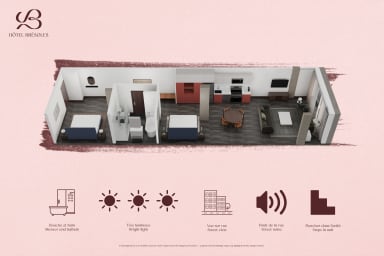 Filled with natural light, the space offers a vibrant and comfortable setting designed for shared stays without compromise.