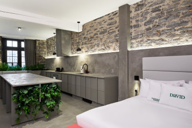 Entrez dans un espace où le charme du Vieux-Montréal rencontre le confort moderne. Chaque chambre offre un grand lit king, une laveuse-sécheuse et une cuisine entièrement équipée, incluant une machine Nespresso. Détendez-vous devant une smart TV avec un compte Netflix actif. Grâce au self-check-in et à votre Boarding Pass exclusif, tout est à portée de main. En cadeau, chaque invité reçoit un sac signature David Hotel, un souvenir unique de votre séjour.