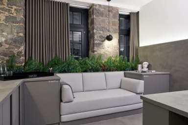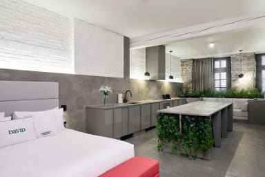 Découvrez un vaste espace où le charme du Vieux-Montréal rencontre le confort moderne. Profitez d’un lit king-size, d’une laveuse-sécheuse, d’une cuisine toute équipée, dotée d'un grand îlot et d'une machine Nespresso. Détendez-vous dans un coin salon, avec deux TV connectées et Netflix inclus. Accédez facilement à votre séjour grâce à l’auto-enregistrement et à votre Boarding Pass exclusif. En cadeau, repartez avec un sac tote David Hotel, un souvenir unique de votre expérience.